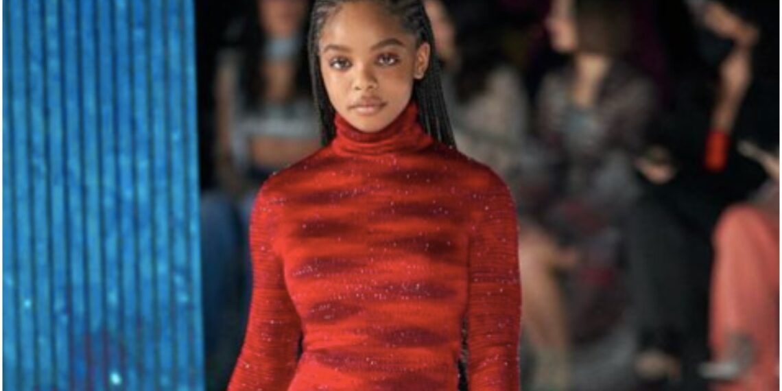 Missoni’s creative director, Angela Missoni, had an all-star list of celebrities to walk the runway wearing looks from his Autumn/Winter 2022 collection, and Martin was one. The actress wore a glittery red turtleneck mini dress paired with ankle boots. Martin also wore cornrows on the runway.