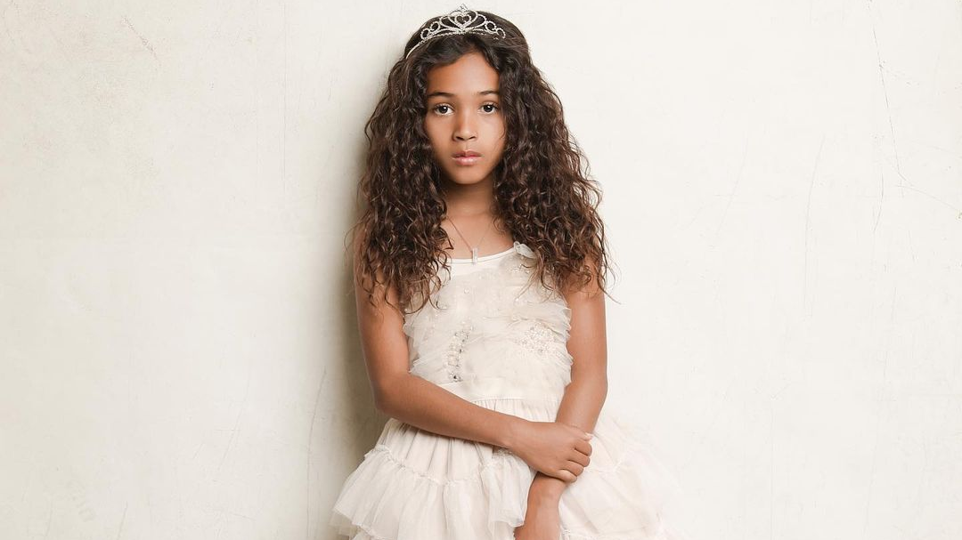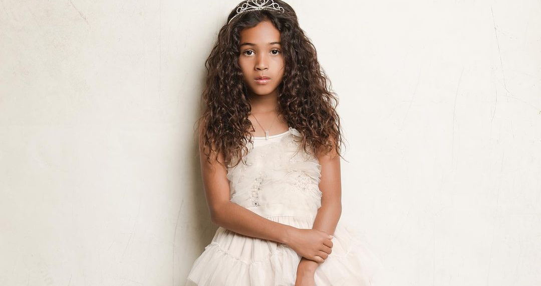 In one of Guzman’s Instagram posts, Royalty poses for the camera in a white layered ruffle dress with a tiara sitting on her long brown curls.
