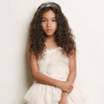 In one of Guzman’s Instagram posts, Royalty poses for the camera in a white layered ruffle dress with a tiara sitting on her long brown curls.