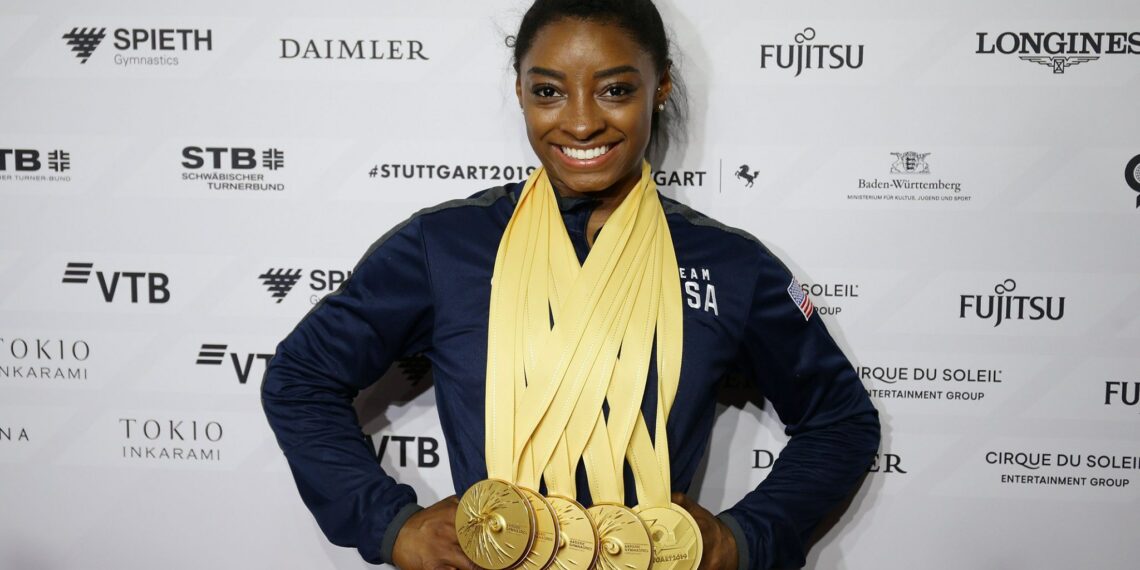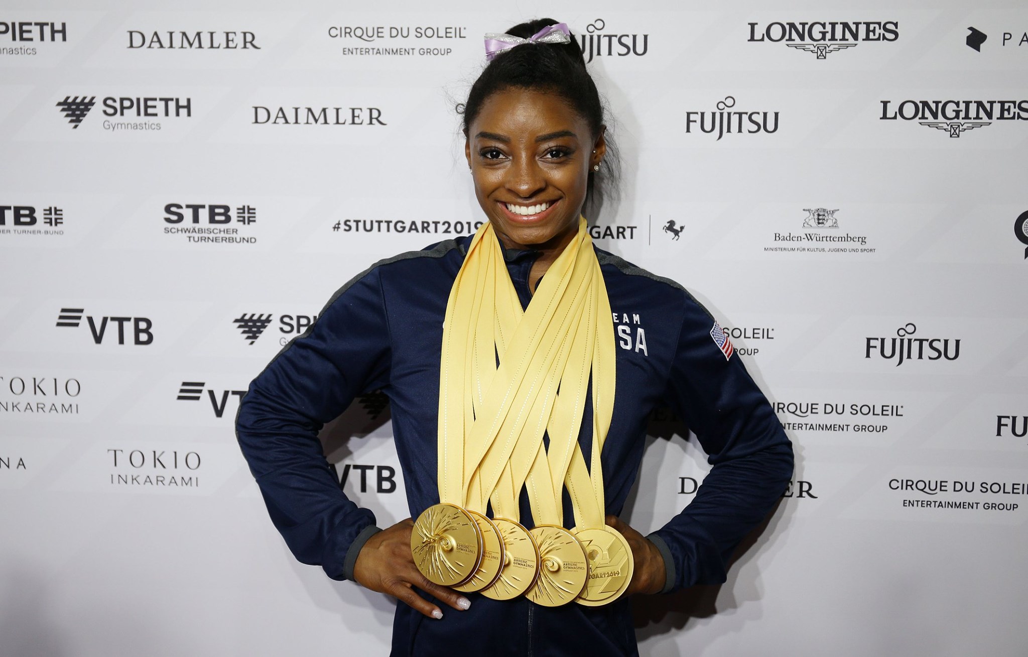 Simone Biles is the most decorated American gymnast with a total of 30 Olympic and World Championship medals. In 2019, she was named the AP Female Athlete of the Year. She was also the first woman to win four straight United States all-around titles.